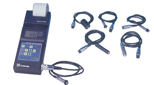 涂层测厚仪可无损地测量磁性金属基体上非磁性覆盖层的厚度,及非磁性金属基体上非导电层厚度,可广泛用于制造业、金属加工业、化工业、商检等检测领域。覆层测厚仪体积小、测头与仪器一体化,特别适用于工程现场测量。本仪器符合以下标准: GB/T 4956─1985 磁性金属基体上非磁性覆盖层厚度测量磁性方法 JB/T 8393─1996 磁性和涡流式覆层厚度测量仪 JJG 889─95 《磁阻法测厚仪》